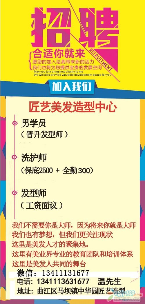 正文摘要:我們不需要你是大師,因為將來你就是大師 我們也有夢想,但我們更關(guān)注現(xiàn)狀 這里是美發(fā)人才的聚集地 這里有美發(fā)界專業(yè)的教育團(tuán)隊和培訓(xùn)體系 這里是美發(fā)人共同的舞臺 上班時間:早上十點(diǎn)---晚上十點(diǎn) 月休三天, ... |